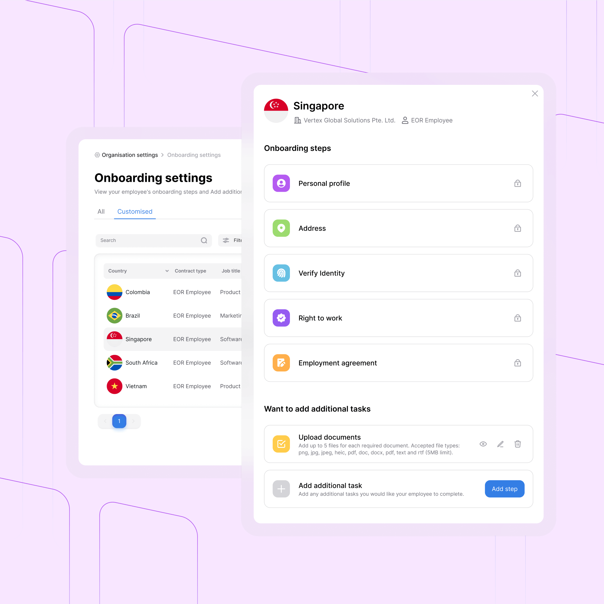 Automated, country-specific Right to Work flows that capture exactly what’s required for each jurisdiction. Speed up verification and reduce compliance risk with workflows that adapt to local regulations.