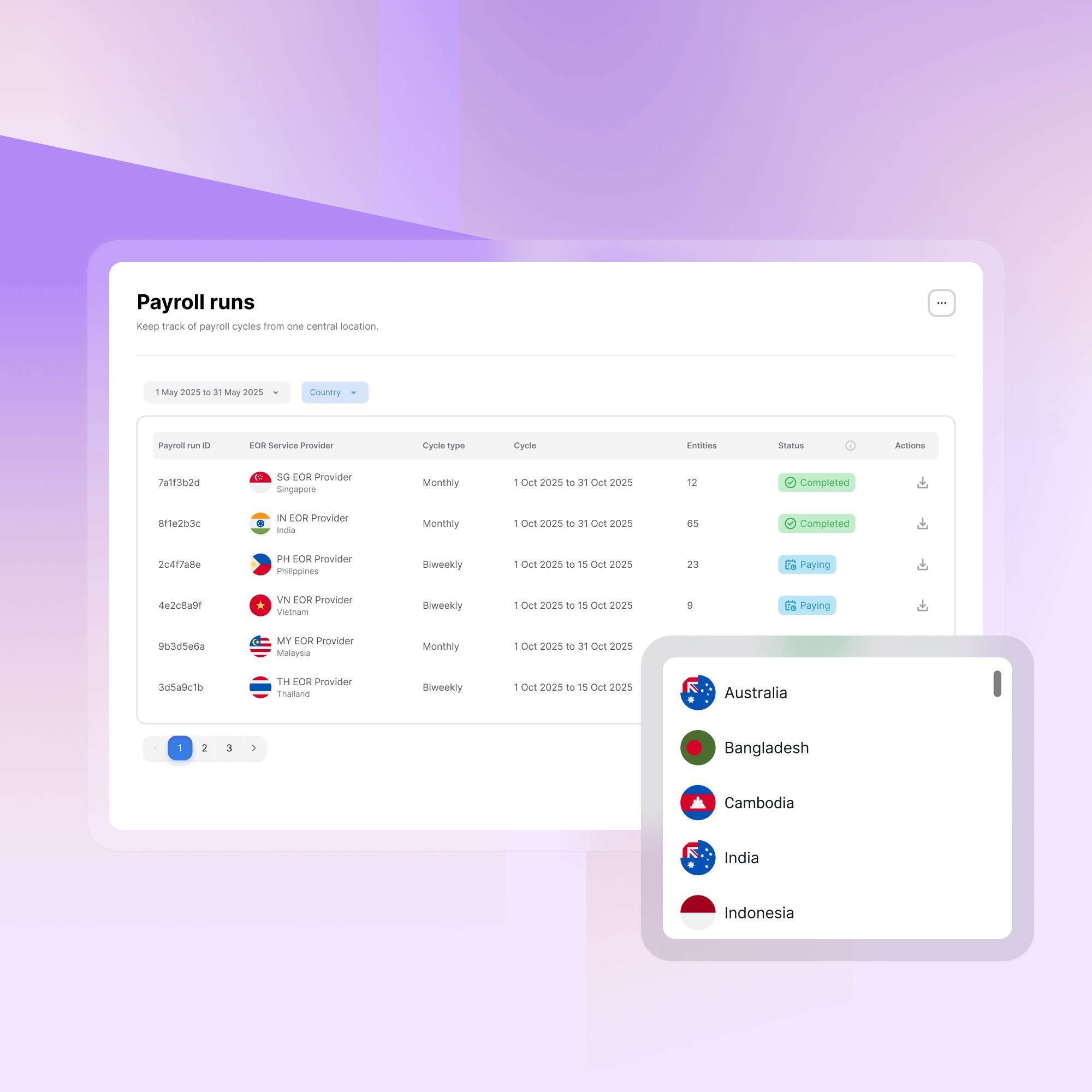Build and manage your provider network directly in the platform. Onboard In Country Providers and Payroll Partners, define service areas, and extend your geographic reach without leaving NEO.